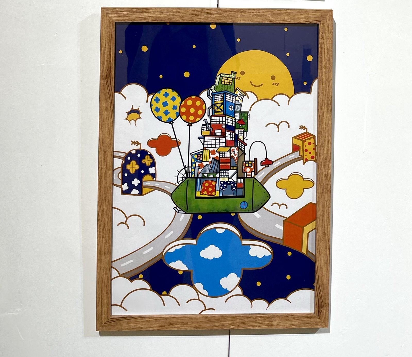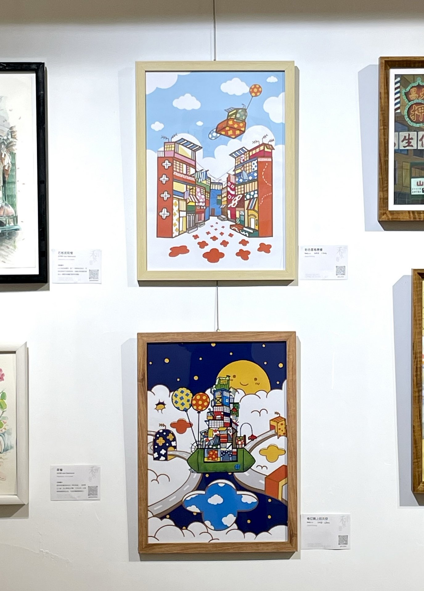 快閃展出兩幅作品,分別為《Creative_彩虹香港唐樓》和《奇幻晚上的天空》。A pop-up exhibition showcasing two artworks: "Creative Rainbow Hong Kong Tenement Buildings" and "Fantasy Night Sky".